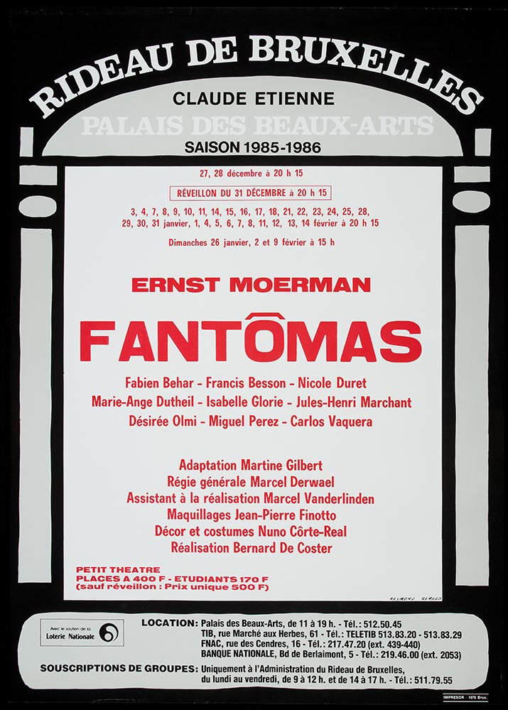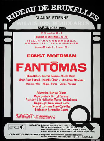 Au Rideau de Bruxelles (Bernard De Coster,dir.) – rôle du clown blanc et du serviteur de Fantômas.