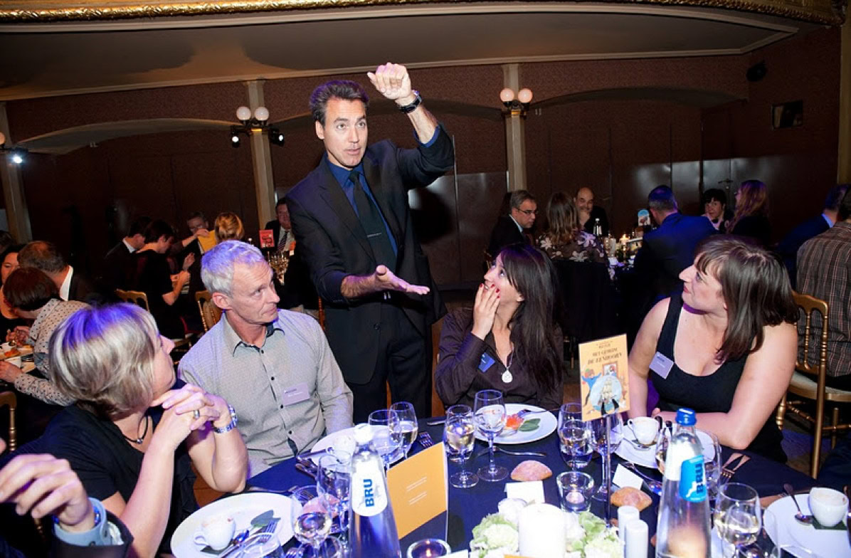 Des prestations d’illusionnisme et de mentalisme subtiles et intelligentes, présentées à proximité immédiate des invités, de table en table ou de groupe en groupe. Un moment mémorable !